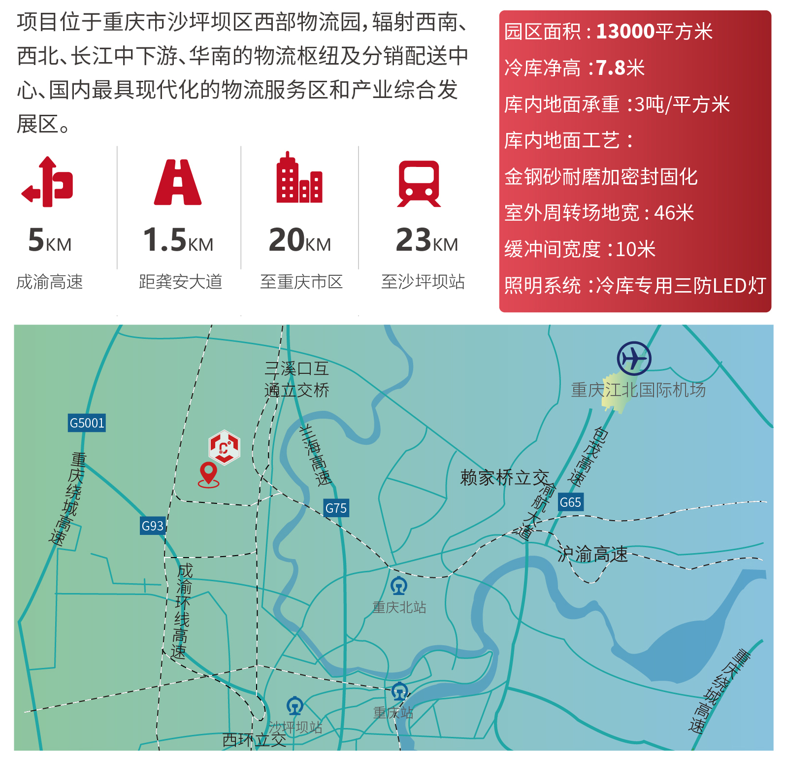 ?區(qū)位優(yōu)勢——項目位于重慶市沙坪壩區(qū)西部物流園,輻射西南、西北、長江中下游、華南的物流樞紐及分銷配送中心、國內(nèi)最具現(xiàn)代化的物流服務(wù)區(qū)和產(chǎn)業(yè)綜合發(fā)展區(qū)。